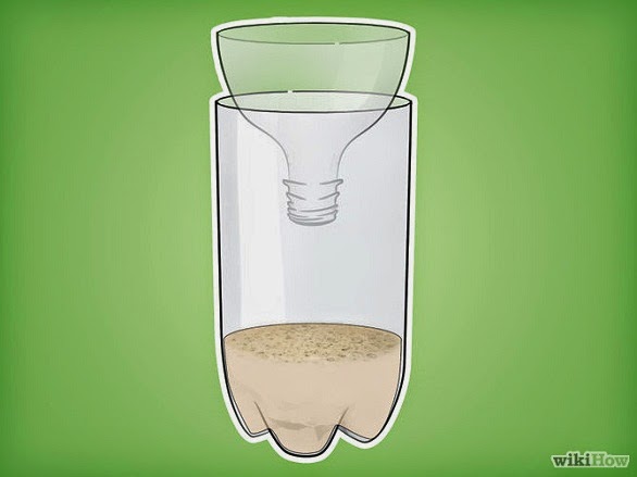 5. Letakkan bagian corong, terbalik, kedalam separuh botol tadi.