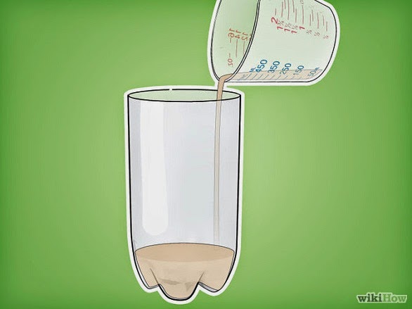 3. Tuang campuran ke bagian bawah botol plastik.